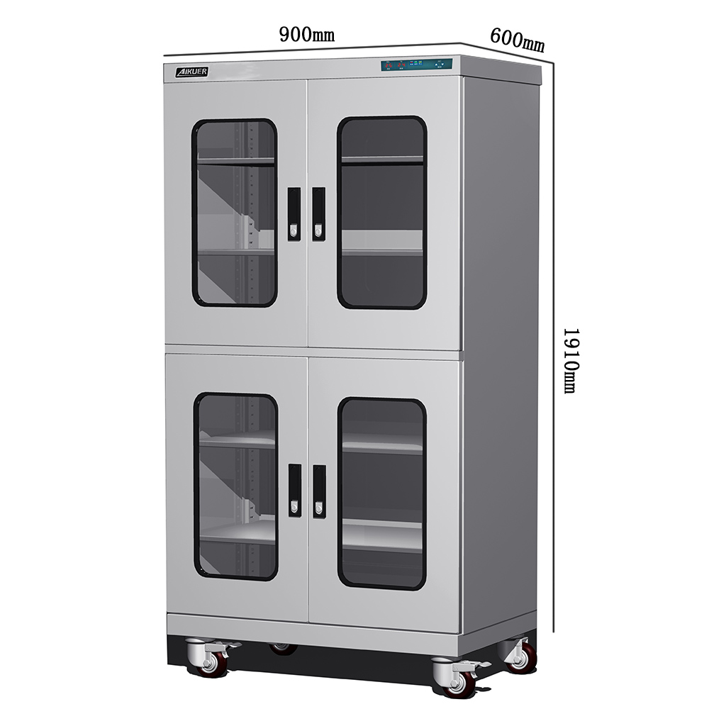 6、智能化探测控制系统使设备运作更加稳定节能。一般的防潮干燥机还原加热时间间隔是有固定的,这会导致主机在环境湿度较高及开关门多次的情况下除湿能力不够;更会在环境湿度一般或较低的情况下除湿能力有剩余,而被强行进行加热,导致耗电量增加,使用寿命下降。本系统会自动检测柜内湿度的变化,智能调整加热时间,有效的解决上述问题。