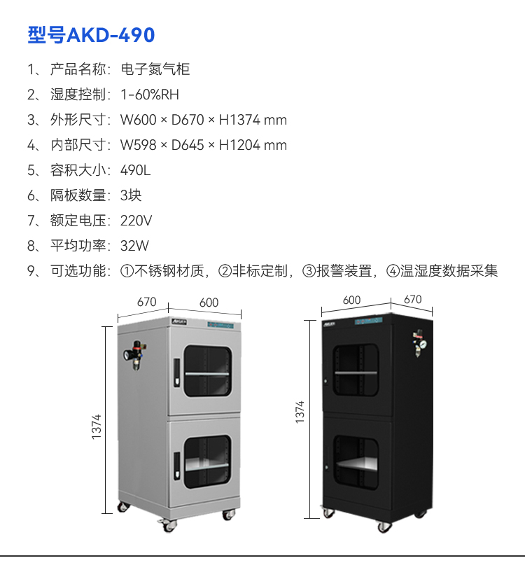 产品容量:900L,外尺寸:900*600*1910mm,层板:5块,湿度范围:1-60%RH